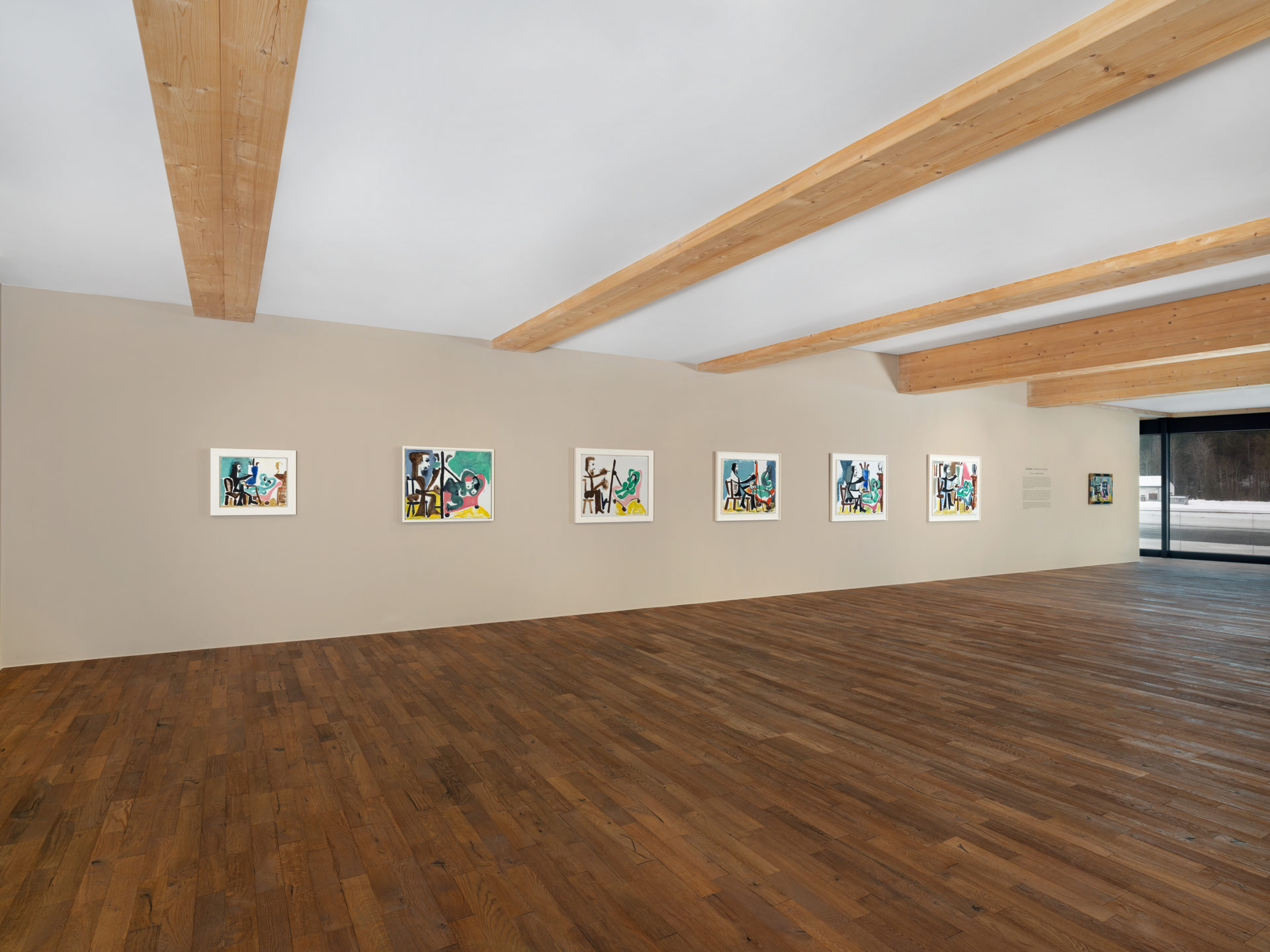 While Picasso explored the archetypes of artist and model in earlier works, his investigations into these subjects took on a heightened sense of self-consciousness at the end of his life. The vivid palette and striking economy of form Picasso employs throughout this series of the 1960s reflect an urgency and expressive intensity unparalleled in his previous paintings on the theme. Across this suite of canvases, viewers find Picasso undertaking what would prove to be his most focused existential investigation into the creative process.